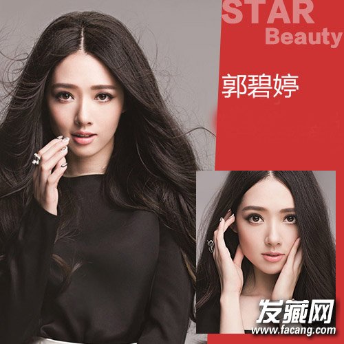 氧气美女郭碧婷,一头长发校花范儿十足,中分黑色长发甜美优雅,一点点卷发设计更显时尚气质。