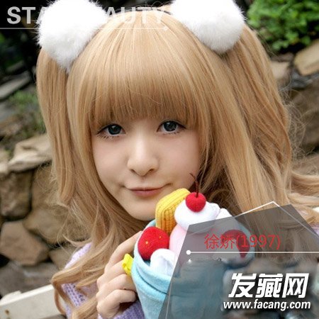 日系风格假发造型,厚重齐刘海扎成双马尾,立刻好像漫画中走出来的一样,化妆之后的徐娇看起来更加可爱了。