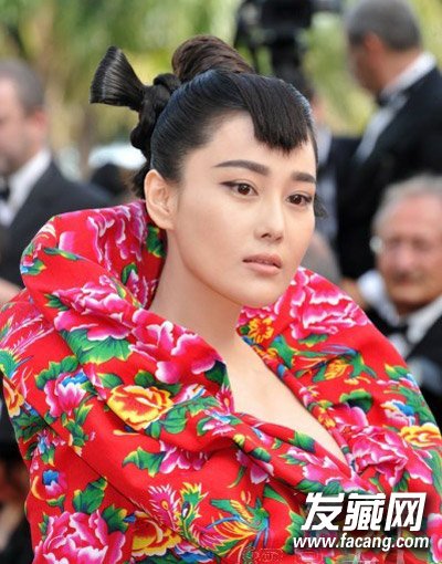 还是让范爷来为你示范下龙跑到正确穿法吧,斜肩礼服小露性感,蓬松发髻盘发复古而又优雅,不需要太多装饰,这样简单一点看着还舒服一点。