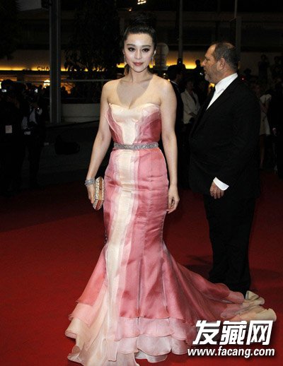 电影节期间造型,这款礼服就不是很好看了,显得范爷有点胖,但清爽的盘发还是很显颜值的,脸在胜过一切。