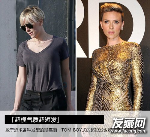超模一般的超短发,展现整个脸部的轮廓需要你拥有瘦削的脸型,饱满的额头,才可以勇敢的挑战这种超短ALL BACK发型,对于斯嘉丽来说自己胜任自如。