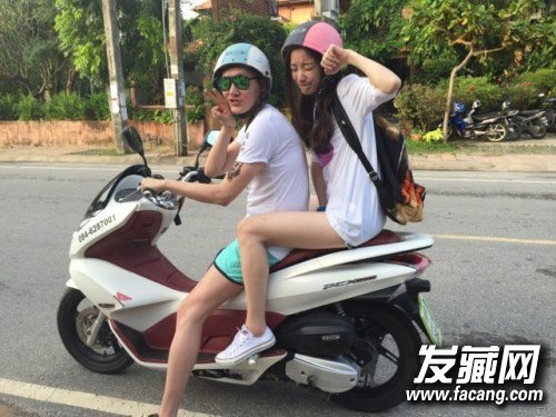 早前晒出两人度假照,短裤白T大秀美腿,倪妮长发稍微弄卷,披在敬爱那头很是甜美俏皮。头戴粉色头盔的样子也很是可爱呢。