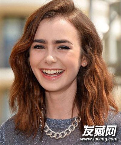 莉莉·柯林斯的侧分LOB造型采用中波浪烫发以及染发结合,让LOB造型更有青春活力,减龄效果十分明显,这款发型有亲和力但也有自我个性,很适合莉莉·柯林斯