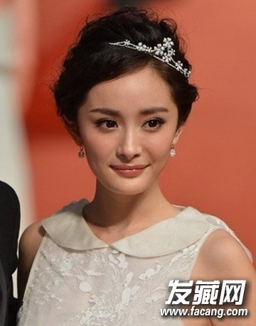 想要更加奢华夸张一些,可以学习杨幂选择皇冠造型的发饰,银色的小花朵造型迷你小巧,微微凌乱的蓬松盘发充满复古味,整体发型颇有冰雪女王的即视感,轻轻松松就令杨幂吸引住所有人的目光。