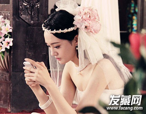 剧中另一款叫人惊艳的造型,民国风新娘造型很是甜美吸睛,蕾丝发带,洁白的头纱,略显夸张的粉色花朵配饰,无不彰显甜美气质。