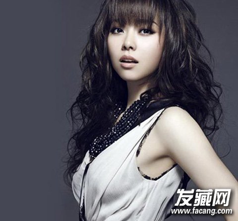 示人,但是有时候也是有改变的,不然怎么称得上百变歌后.这次的发型是齐刘海加澎湃的大波浪和小烟熏妆,整个造型显出了妩媚的淑女韵味。