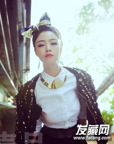 一向自诩为微胖界代表的蒋欣很喜欢将长发扎起来,简单盘发配上夸张蝴蝶结发饰,甜美新潮,秒变时尚girl。