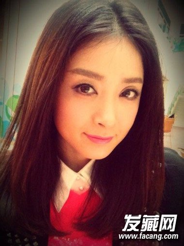 发型。蒋欣私照,中分