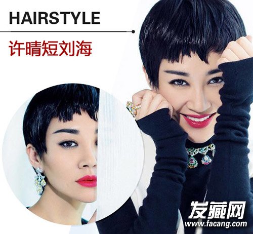 许晴的短刘海造型让她撞脸性感天后coco李玟,妩媚迷人。许晴油头短发搭配不规则短刘海时髦度相当高,突破原来的清新气质。