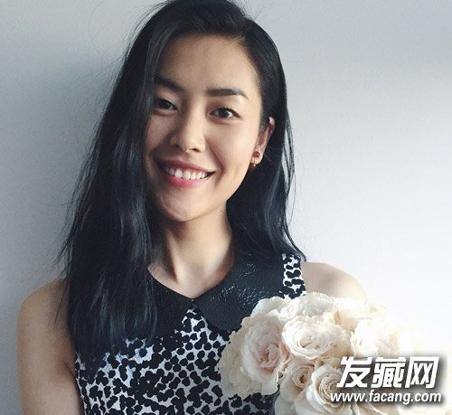 深深的酒窝让刘雯笑起来格外亲切可人,一九比例大偏分造型打造出蓬松毛躁的质感,散发出些许慵懒感,经典的黑发色更显刘雯的好气质。