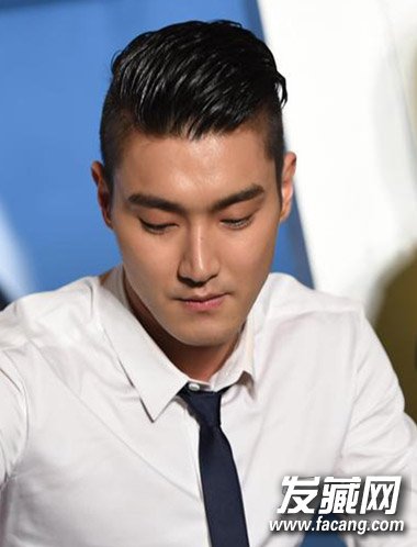 休闲的衬衫造型搭配类似莫西干头发型,将中间较长的部分后梳,利用定型产品打造出湿亮质感,尽显始源的时尚个性,而两侧的头发剃短勾勒出清新爽朗的气质来。