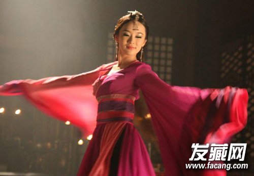 一身妖艳的红色是古装中美女的必备造型,霍思燕梳着中分发髻,修身红色长裙展现曼妙舞姿,展现性感一面。