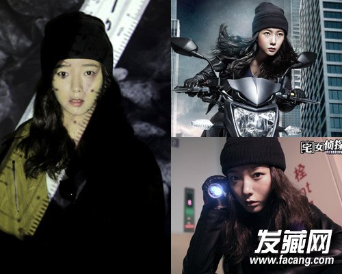 王珞丹电影中造型,长发披肩变身帅气机车女,搭配毛线帽清新又文艺,将宅女和女汉子的特质表现的淋漓尽致。