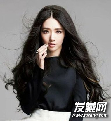 乌黑亮丽的发色可是最显郭碧婷的简单大方感了,而配合这种中分的造型与蓬松的及腰长卷发更添十足的气质女神范儿哦。