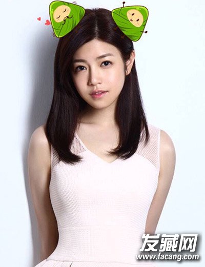 简单的中发造型,用一侧的头发偏分,遮住脸颊,可以从视觉上达到瘦脸效果,即使被P上了两颗粽子,也不影响她的清纯美。