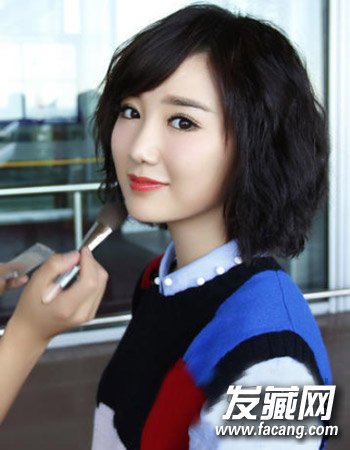 ,偏分的刘海与中短发烫发搭配起来,不仅修颜感很好,而且平添了一丝活泼感。