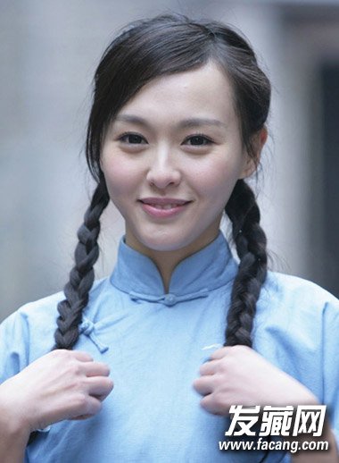 标准的民国女大学生双麻花辫,让原本就甜美的唐嫣更加嫩嫩哒,乖乖女的发型搭配复古学生装,妆容清淡质朴,虽然前发依旧稀疏脑门还是这么大,但丝毫不妨碍这一身的清纯少女气。