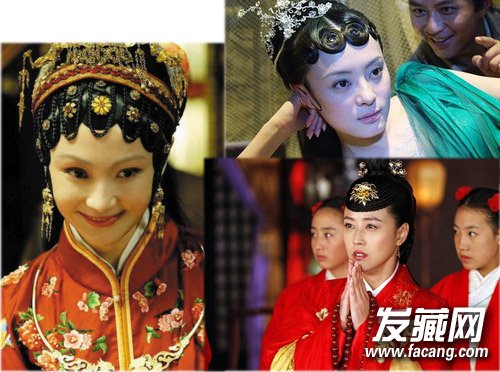 这点小编要也别说一下,这样戏剧风的贴片式刘海造型好的真的没有谁驾驭的好,《红楼》中姚笛似的铜钱头更是成为最丑古装发型之一。