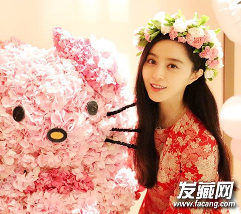 继戛纳的“花姑娘”造型后,范少女深陷繁花不能自拔,生日再过一把花仙子瘾,这次长发飘飘带花环,“霸气”不见了,清甜可人仙气十足,可比身边的大kitty猫美太多!