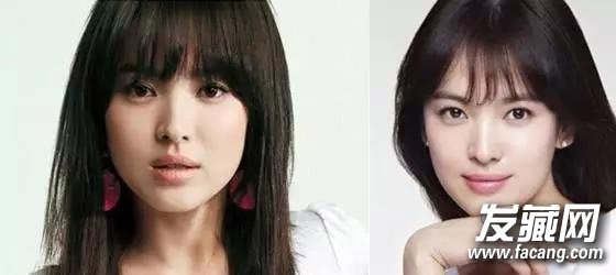 看乔妹的齐刘海,乍一看差不多,其实右边一款更减龄一些呢,感觉更显灵气,没有左边那种土气的厚重感。