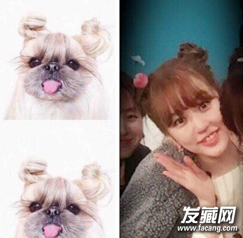 其实不仅是她,娱乐圈好多女神都曾跟动物撞发型呢。