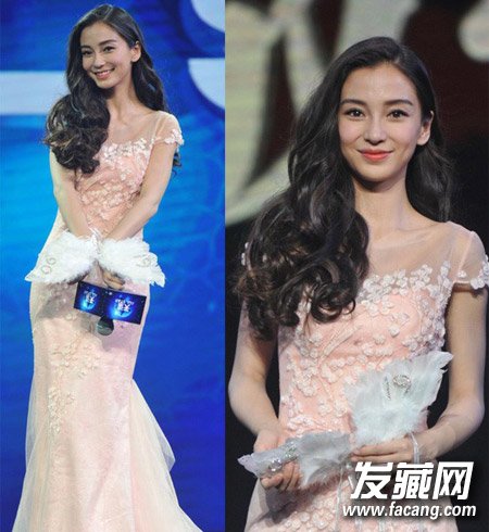 近日Angelababy正在为水肿的事情发愁了,这也是新娘婚前很容易出现的问题,所以盘发还是有点冒险了,这样披肩的长卷发更好一点,最起码还能遮遮脸呢。