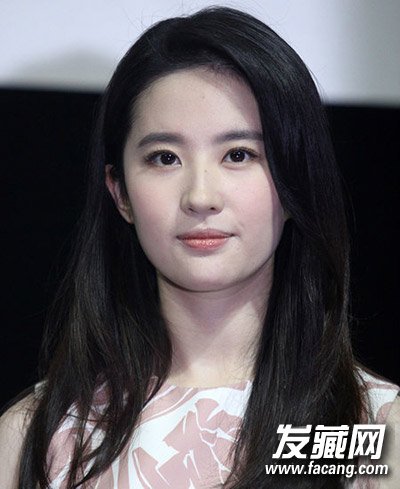 披散的过肩长发,终于展现出了刘亦菲温柔的一面,前发不经意的勾勒出S型线条,透露出了丝丝女人味。
