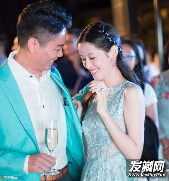 奶茶妹妹刘强东结婚照,湖绿色礼服倍显清纯感,侧边