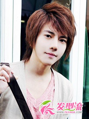 发丝分界线清晰的造型酷感十足,将7分发量的头发营造出蓬松高耸的感觉,3分头发做出拉直效果、棕色系染发令发型更具潮流范儿,干净清澈的眼睛虏获不少MM的芳心。粉色系上衣的搭配柔和了男性化的一面,还能更显肤色。
