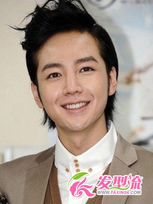 拥有完美脸型比例的张根硕运用起这款男士短发,同样游刃有余!简单大方的黑色搭配个性十足的刘海设计,很有王子的气派哦!