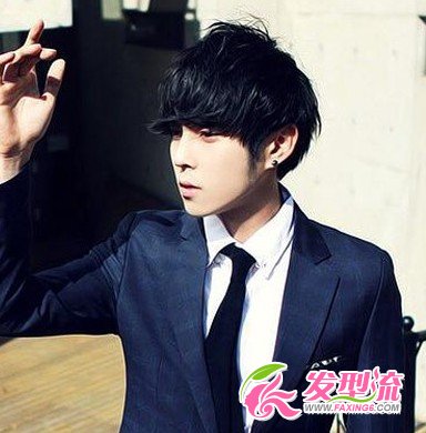 此款发型的亮点在前额刘海上,刘海发梢做出外翘感让造型更加立体。这样即使是黑色发丝也不会显得很沉闷。如果不介意刘海过长遮住眼睛,那么稍长的刘海更能提升潮流度。搭配西装演绎出时尚的英伦绅士风,实在迷人。