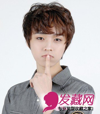 发丝制造出凌乱感,让造型显得很是随意。粟色的染发又不会太过夸张,搭配较为白皙的皮肤更加适合,给人一种校园男生的稚嫩感。