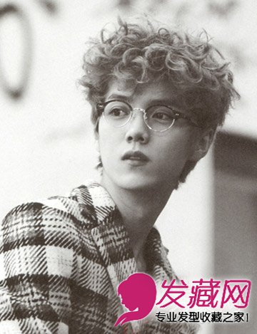 带点个性的泡面头发型,螺旋烫蓬松可爱,戴上小圆的复古眼镜,化身呆萌的年代雅痞绅士。