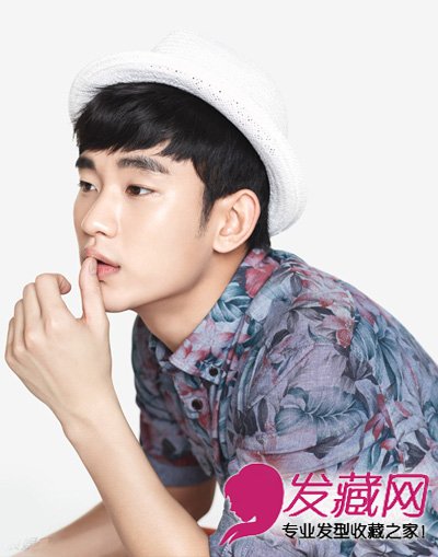 黑色刘海蓬松轻盈,露出完美的脸部线条,搭配一顶白色礼帽,玩味十足。