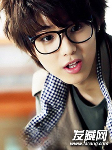 型,微微弄卷,看起来蓬蓬的,碎发刘海修饰着小眼睛,戴上黑色大镜框,学院风十足。