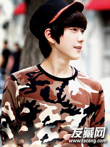非常适合学生的一款简洁短发发型,对于长脸男孩,可以留个厚重感的刘海,简洁的鬓发修饰着脸颊,棒球帽,休闲阳光活力四射。