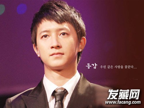 这是韩庚早期的发型,带着耳钉韩范潮男,剪了短发之后,染成深栗色,显得稳重大方,清爽随性的剪发,可爱的刘海做修饰,这款栗子头发型也非常好打理。
