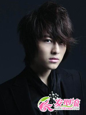这款非主流发性的造型感较为强烈!在较暗的灯光下,头发呈现出一种暗哑的淡紫色,低调却不乏时髦感!发型的重点在于高高耸起的发顶以及长长遮住眼睛的刘海设计,让整体效果都非常的抢镜,搭配黑色西装和一个配饰的点缀,有了绅士的感觉!