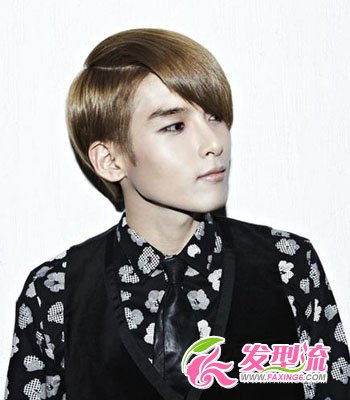 金棕色短发 一款非常时尚前卫的男生斜刘海发型图片。染上今年大热的金棕色发色,时尚感十足,很显潮流范儿,绝对惹人注目。三七分斜刘海,半遮眼睛,散发出一种神秘魅惑,让人心动。同时也衬托出精致的五官。
