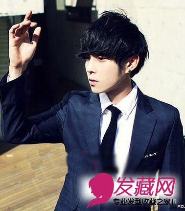 ,选择自然的黑色,显得清秀帅气,稍稍带有外翘感觉的刘海动感有型,服帖的鬓角俊俏的美男味道十足。