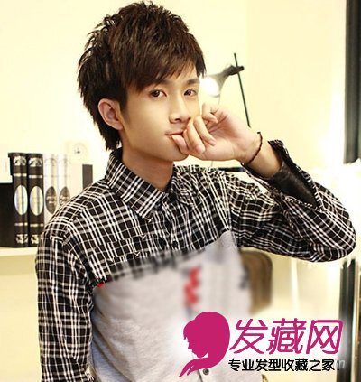 ,头顶的蓬松感,清晰的束感发丝,时尚个性的潮流造型,深棕的头发颜色,覆盖额头的刘海,亲切又阳光的帅气男孩造型。