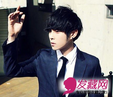 ,长刘海侧分刘海在末端弄成外翘的效果,搭配彰显绅士魅力的西装,更有成熟男士气质。