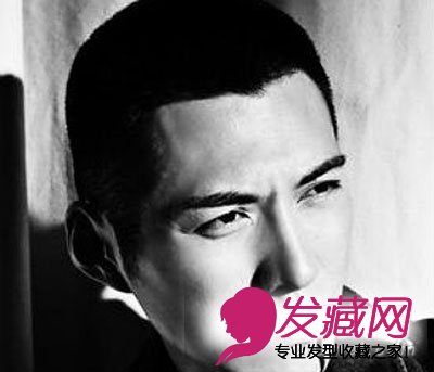 完美五官男人的严宽,M字额的小平头短发,带点痞痞气息的