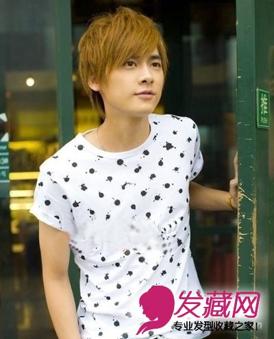打造阳光型男形象的金色长刘海发型,盖住额头的长刘海将秀气的脸型修饰得小巧,清晰的纹理感发丝,加亮眼金色头发,冬天有型不沉闷。