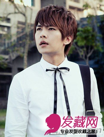 小编点评:栗色短发给人一种时尚感,露出耳朵的鬓角剪法也是现在最流行的潮男发型特点。