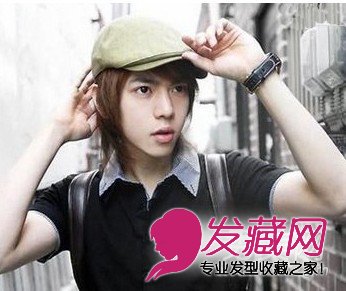 柔顺的发质,顺直的长直发,是这款男生发型的特点,发尾碎发的发型设计,使顺直的发丝带有丝丝飘逸感,两侧的直发和前额的发帘被时尚帽子遮盖,一款男生长发型图片展现男生的时尚气息。
