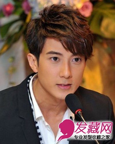 奶爸吴尊发型 斜刘海深棕色纹理烫(6)