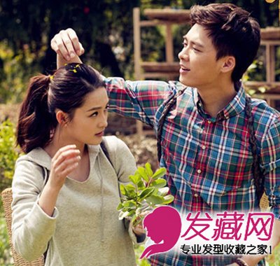 李易峰栗色的短发穿搭个子衬衫,呆萌帅气,扎着马尾的李沁看上去也是很俏皮可人。