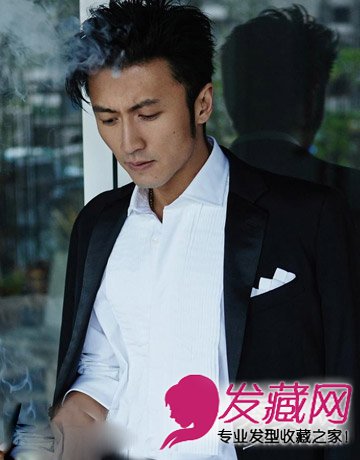 简单的短发凌乱的发丝,尽显帅气刚毅五官,漂浮的烟雾朦胧中给人一种帅气的感觉,白衬衫加上黑色西装,尽显型男范。