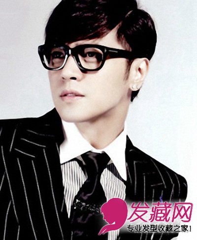 采用了侧分的发式,没有经过任何的染烫技术的发丝格外顺滑,刘海整齐的侧分向一边,佩带一副黑框眼镜,整体感高端大气上档次。